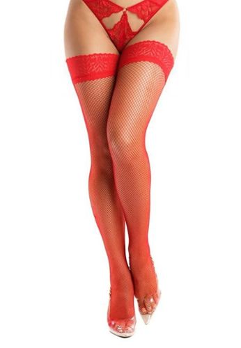 The Fishnet Stockings Red - Confident Seduction embody sensuality without compromise. Self-holding with silicone band, highly elastic, comfortable. Bold, captivating, irresistible. Garter belt compatible.