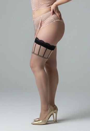 Des bas qui racontent une histoire de contraste. Design raffiné avec motifs géométriques noirs sur fond nude pour un style élégant et moderne.