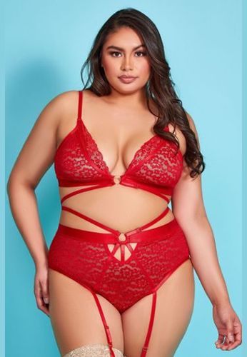 Das Set Tentation 2 ist ein gut durchdachtes Stück, um deine Silhouette mit Stil und Komfort zu betonen. Der BH ist ohne Bügel, bietet aber echten Halt durch ein Unterbrustband, das sich mit einem goldenen Ring verbindet. Träger kreuzen sich und verbinden sich mit dem Ring des Hochbund-Slips, sehr schmeichelhaft, ergänzt durch verstellbare Strumpfhalter (abnehmbar). Und zum Abschluss: offen im Schritt und am Po — für ein komplettes und vielseitiges Stück.