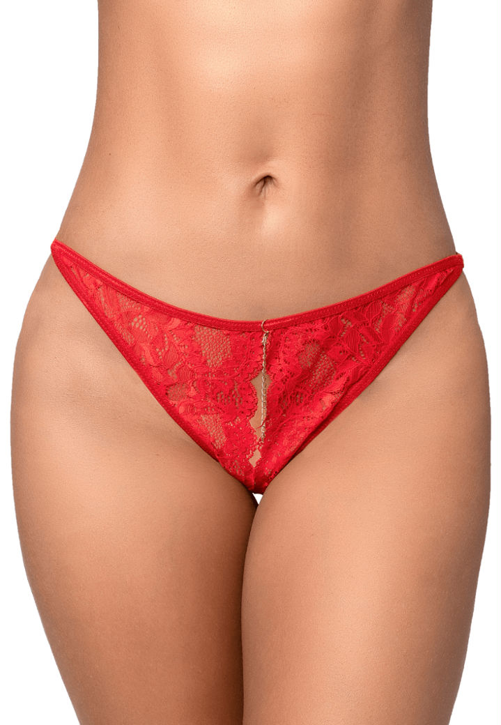String σε λεπτή δαντέλα διάτρητη με ρυθμιζόμενα κορδόνια στα πλάγια. Εξευγενισμένη δαντέλα, λεπτομέρειες σε κορδέλα σατέν, παιχνιώδης και τέλεια εφαρμογή. Άνετο και αισθησιακό, διαθέσιμο σε κόκκινο και μαύρο.