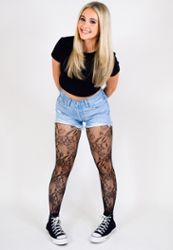 Plus Size Black Mesh Tights with Floral Pattern - Flower Power Sexy