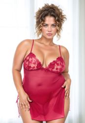 Babydoll Talla Grande Bordado de Malla con Tanga - Juguetón y Sensual