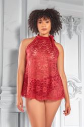 Babydoll Talla Grande Hera Encaje Rojo Espalda Descubierta Sexy