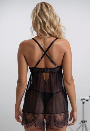 Este picardías corto con tanga a juego realza tus curvas con una elegancia natural y refinada.