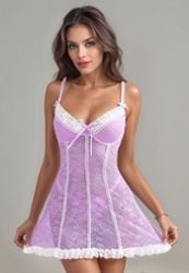 Erliegen Sie dem unwiderstehlichen Charme des Babydolls Violetta, bei dem zarte Spitze auf kontrastierende Einfassungen trifft, um einen atemberaubenden Effekt zu erzielen.