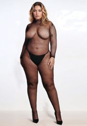 Scoprite il nostro bodystocking a rete: collo alto, schiena nuda e cavallo aperto.