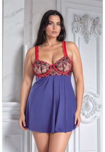 Maurie es ese babydoll exclusivo y lujoso en encaje bordado, microfibra opaca y malla azul y rojo. Encaje con pestañas en la tirante delantera, armaduras para un excelente sostén, tirantes traseros ajustables. Abertura trasera muy sexy en jaula, cierre trasero con ganchos. String micro asortido para completar el conjunto.