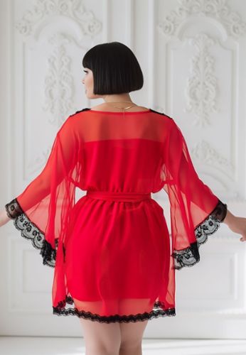 Voluptuosa : un negligé transparente voluptuoso y terriblemente sexy con string coordinado. Mangas anchas con aberturas glamurosas, cinturón de satén, muy agradable de llevar. Perfecto solo o sobre tus outfits favoritos, disponible en talla grande y talla estándar.