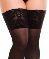 Grote maten hold-ups met prachtig bewerkte kousenbanden en perfecte ondersteuning. Luxe en comfort.