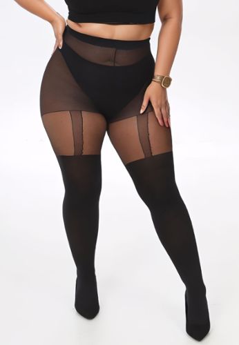 Revela tu sensualidad vintage con estas medias talla grande con efecto liguero. Un accesorio de seducción que combina transparencia y opacidad para un look irresistible.