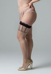 Medias Liguero Talla Grande Patrones Geométricos Nude Negro 20 Den