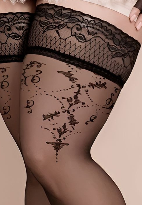 Glamour y seducción: medias de alta costura, lirios y encajes, elegancia irresistible para todas las ocasiones, disponibles en tallas hasta la moderadamente grande.