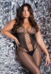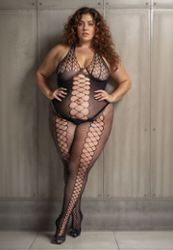 Combinaison Bodystocking Grande Taille - Résille Ajourée Jambes Dos Nu