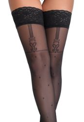 - Modello: autoreggenti nere con motivo a rete a pois e bretelle integrate
