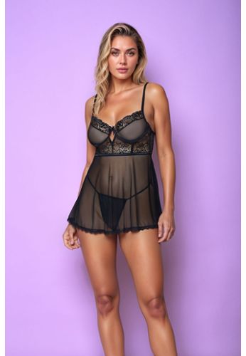 Lasciatevi sedurre dalla perfetta combinazione di raffinatezza e audacia con questo babydoll ricamato in tulle. Un insieme irresistibilmente malizioso che svela con sottigliezza la vostra sensualità.