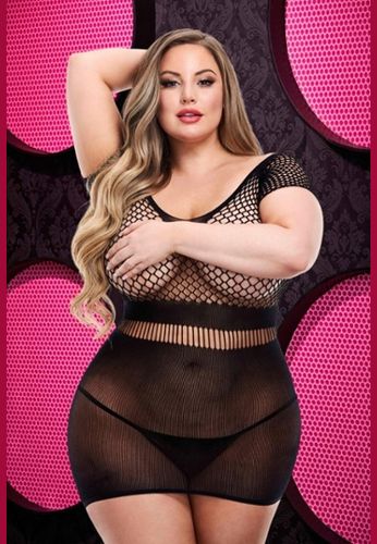 Deze bodystocking jurk met korte mouwen combineert comfort en sensualiteit met zijn opengewerkte visnetpatroon. Het stretch breisel past zich op natuurlijke wijze aan al je rondingen aan voor een perfecte pasvorm.
