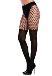 Een panty die de regels breekt. Jarretelleneffect met ondoorzichtige benen en net op de dijen voor een gedurfde look.